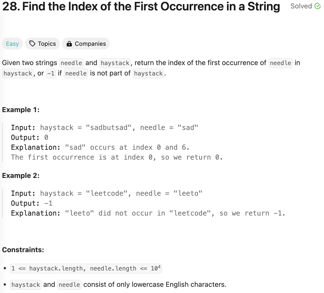 더 짧은 길이인 needle 문자열이 haystack 에 포함되어있는지 체크